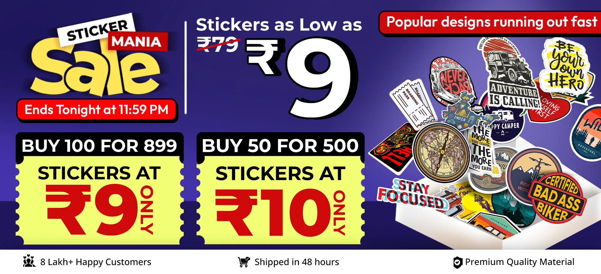 Within a few months, we were the talk of the town. Months passed and we became India's largest Online Sticker-Selling online store. We take pride in saying that to date we have satisfied over 8 Lakh+ and 80 Lakh + stickers sold